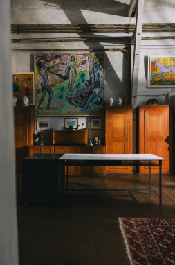 In seiner ehemaligen Garage erfahren wir im Film «Cuno Amiet und die Oschwand» Wissenswertes aus Amiets Biografie und seiner Beziehung zum Dorf Oschwand.